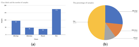 The sample size of annotated class and its corresponding object class in the Road Asset corpus. Sample size for each class (a) and Percent of sample size for each class (b).