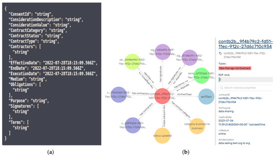 KGs and ontologies can aid the building of common solutions, foster interoperability, support knowledge discovery, and decision making [14,15,16,21,22]. In UC1 and UC2 as discussed above, the usage of web technologies in combination with semantic technologies ensures information reusability, reliability, and inference to support the end users on the web [23]. The use of KGs for consent-based GDPR compliance has already proven to be beneficial in our previous work presented in [24]. In our earlier work [24], we proposed and developed a scalable data protection by design tools for automated compliance verification and auditability based on informed consent using KGs. This research focuses on performing GDPR contract compliance verification, where consent is not enough, for example, in online services [6]. Furthermore, in comparison to the diverse consent ontologies that are available, as shown in [8], there are few ontologies that model contracts based on GDPR. Following this and our previous work in [24], we present a KG-based solution for digital contracting, which has the following functionalities: (i) binding GDPR with data sharing contracts and (ii) performing CCV checks on contracts.