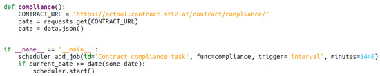 - Contract Compliance Verification GitHub Repository. Available online: https://github.com/AmarTauqeer/Contract/tree/master/backend/ (accessed on 1 June 2022).