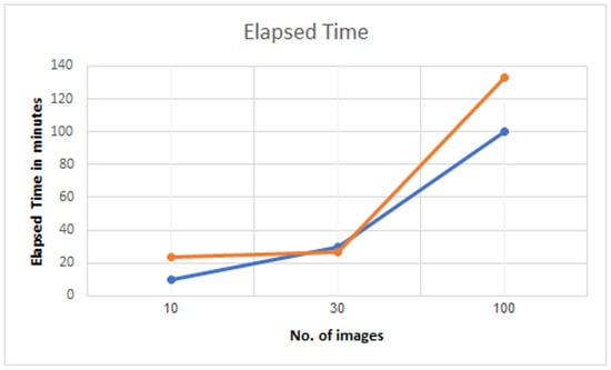Figure 15 is a graphical representation that aims to provide the detail about the three trained data-sets. Time elapsed is measured in minutes. Once we have completed the analysis at the edge level and cloud level, the information which is finally analyzed is reported back to the main stakeholder. In the proposed model, the first organization comprises of the healthcare unit and the second organization belongs to the patient whose diagnostics reports are generated. The IoT Central hub, after the final analysis of the information, sends the processed data to the blockchain network.