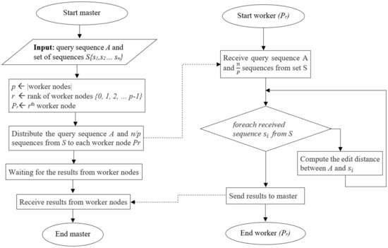 - Sadiq, M.U.; Yousaf, M.M. Distributed Algorithm for Parallel Edit Distance Computation. Comput. Inform. 2020, 39, 757–779. [Google Scholar] [CrossRef]