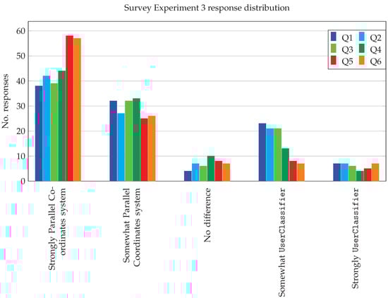 iVisClassifier [] profits from parallel coordinates, but to reduce the attributes presented to the user, the dataset is presented only after using linear discriminant analysis (LDA) for feature reduction. The visualisation uses only the top LDA vectors. However, using this new LDA feature blocks the user’s understanding of the visualisation since each LDA feature is a vector of coefficients over all the original attributes (or dimensions). Heat-maps are displayed in an attempt to help interpret component features, but they could possibly only have some semantics in the particular application of front-human-portrait face-recognition. A similar approach [,] uses techniques to visualise the high-dimensional feature space in two dimensions, so a human can draw a piece-wise linear boundary split in the 2D visualisation and iteratively construct the decision-tree classifier. This approach claims that some feature semantics are preserved, but it does not offer any user evaluation of this claim, neither when it comes to understandability nor accuracy.