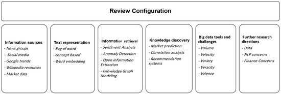 Most of the reviewed works survey fundamental or technical analysis methods [44,45,46,47,48]. We review the literature that processed various heterogeneous data sources for financial decision support by exploring prestigious journals and top-rank conferences to find representative works during the past 13 years that cover the intersection of fundamental and technical analysis approaches. A distinctive aspect of our review is covering the literature from three mainstream viewpoints, including predictive models, correlation analysis methods, and recommendations for trading strategies. Another aspect of our work is studying big data challenges, such as the veracity of textual information and the impact of fake news on the stock market or the valence of groups of investor’s behavior, and introducing tools for the huge amount of real-time data storage and processing.