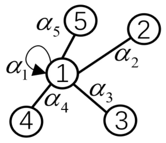 where denotes the attention coefficient of neighbor node to central node at the layer of the convolutional network, and denotes the weight matrix of central node to each neighbor node at the layer of the convolutional network. A multi-headed attention mechanism can also be introduced to enhance the expression of feature fusion [19].