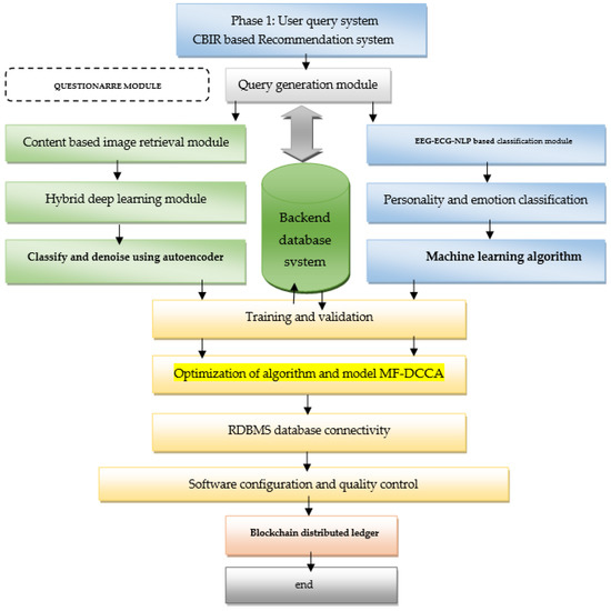 Automatic personality classification models have been widely discussed in previous research in natural language processing. It demonstrates that different types of personalities based on the MBTI factor can be classified using social media data sources and pre-trained language models using a deep learning algorithm. Different data such as Twitter data or Facebook data classify personality based on the core predefined corpus with a maximum accuracy of 98%. Various NLP models are also utilized such as Alexa Net, ImageNet, and other machine learning algorithms [1]. For EEG emotion classification, the combination of wavelet scattering and machine learning has also been predominantly used in human–computer interface systems based on the difficult interfering system and machine learning algorithm. Additionally, features that were extracted from this particular schedule have been collected from the Amigos database, which consists of the different predefined EEG signal waves with different patterns and features. It shows 90% arousal in the two-dimensional classifications of the emotions in the particular segment of the comparison based on the convolution neural network and long-short-term memory (LSTM) algorithm [2]. Content-based image retrieval systems have gained popularity in business and medical content retrieval based on the input query systems that are generated by the users. Content-based image retrieval system consist data of fabric images shown in studies [3] where content-based descriptors have been used [4]. In scripting and mining, the query-based matching algorithm is based on the internal database, which contains thousands of fabric images and hash code. The best scheme in the layer has been used to reduce the retrieval time [3]. A matching algorithm based on local features is used to compare low-level dataset images with low-level Haar feature-based multimedia image classification, which is created by the low-level features of the image and contains the various textures of the image within the data set, in order to retrieve asimilar query-based image. Additionally, research on mean value model-based and content-based image retrieval centered on various standard deviations has been compromised [4,5].