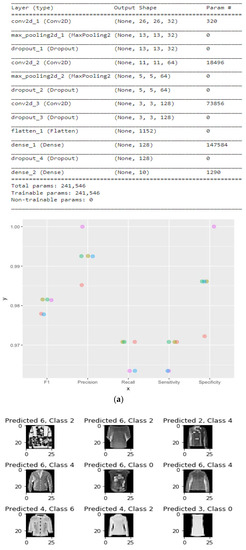 Here, we show CNN’s preliminary findings (intermediate activations). The saliency map produced by various convolutional layers in a network, given a specific input, is the process of visualizing successive installs (the output of a layer is often called its activation, the output of the activation function). This clarifies the many filtrations that the networks have been educated to employ and inputs are divided as shown in Figure 6 [29,30]. In Figure 5a, the dropout probability of p causes the nodes to disappear. Let us try to comprehend using an input of x: 1, 2, 3, 4, and 5 to the completely linked layer. We have a dropout layer with probability p = 0.2 (or retain probability = 0.8). 20% of the nodes would be dropped during forwarding propagation (training) from the input x, meaning that x may change to 1, 0, 3, 4, 5, 1, 2, 0, 4, 5, and so on. It is also applied to the layers that were not visible. The maintained probability, or 1-drop probability, for the input layers is typically closer to 0.8 than 1, as recommended by the authors. The more drop probabilities there are for the hidden layers, up to a maximum of 0.5, the sparser the model becomes. A unit (node/neuron) in a layer is chosen with a maintained probability during training in the original version of the dropout layer (1-drop probability). As a result, the training batch’s architecture becomes thinner and is unique each time.