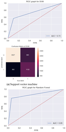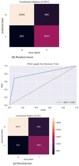 We have portrayed the MBTI-based personality classification based on five-fold cross-metrics, where, the length of each class is depicted as the width, size, concatenated, and terminal transitions. A total of 6000 examples of the various personality types are shown in the length portion of the right column of the data set. We have implemented principal component analysis on the basic state set to gain its entropy in terms of its cross-validation and train and test split data sets. Additionally, the confusion metrics and classification reports have been segregated based on the Python Jupiter notebook, where the precision and recall are depicted. As in the diagram shown below in Figure 8, we show the different confusion metrics and ROC graphs of the different classifiers used for personality type classification. A decision tree classifier was used. For personality type classification, the random forest has the highest accuracy, in which the random forest gives the highest precision of 0.79, 0.90, F recall score of 0.84 and support of3709 to 5706. In Figure 9, the confusion metrics of positive predictive level are shown, where it shows the maximum instances of the different personality types. It has been depicted as an IMFG personality type in the personality distribution metrics. Additionally, the lowest is personality distribution, which is depicted as an ESFJ personality type. We have shown the classification reports of the three classifiers, which we have been used for MBTI personality type classification. The random forest escapes with the highest accuracy of 87%, and the support vector machine gives an average accuracy of 78% in Table 2. Moderate accuracy is achieved by the decision tree induction model, which is 84%. It is validated on the five-fold cross-validation accuracy metrics. The precision-recall and weighted metric show the difference between predicted and correctly classified instances, as shown in Figure 8d [34].