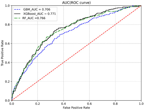 ROC curve for GDM prediction using three prediction models. XGBoost shows best performance.