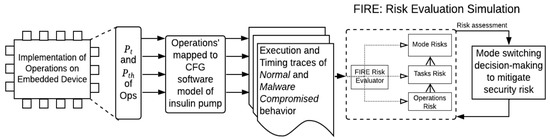 - Experimental evaluation: We perform a model-based simulation to demonstrate and evaluate the FIRE methodology, provided that life-critical embedded systems’ (medical devices’) software is a protected IP by manufactures and lacks well-documented open-source medical device software, particularly in a multimodal fashion. We simulate FIRE in a multimodal software model of a smart connected insulin pump and evaluate it based on risk assessment and management, the false-positive mode switching rate, the mode switching latency, and deviations in threat probabilities by injecting the model with eight different malware samples.