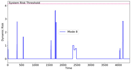 Similarly, the risk threat thresholds for all eight modes of the insulin pump were determined. These risk thresholds were used to order the modes in a monotonically increasing order of risk impact. Ties were settled by considering functionality, i.e., the number of operations/tasks in a mode. The order of modes and their corresponding static risk thresholds are: {RthM1 = 0.68, RthM2 = 0.68, RthM3 = 0.958, RthM4 = 3.887, RthM5 = 3.887, RthM6 = 3.887, RthM7 = 4.144, and RthM8 = 4.144}. The insulin pump system risk threshold during normal operation is RS = RthM8 = 4.144.