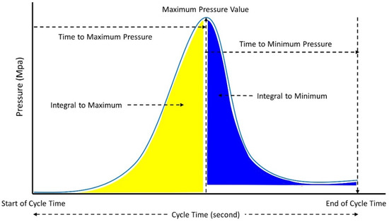 Regarding the efforts to develop better injection molding systems, there is much research that investigates the influential parameters of the molding process. Some researchers argued that cavity pressure has a significant parameter on the quality of injection molded products [31,32,33]. For instance, in an experiment conducted by Chen et al. [34], four cavity pressures, named peak pressure, gradient pressure, viscosity index, and energy index, were used to estimate the quality of injection molding output. In addition, Gim and Rhee [29] extracted five parameters from cavity pressure: initial pressure, maximum pressure, the integral value of pressure changes from the initial to the end of the process, final pressure at the filling stage, and final pressure from the cooling stage. Nevertheless, the determination of significant parameters is a difficult task which leads to the question of which parameters should be extracted from cavity pressure for accurate prediction [15].