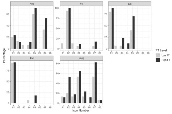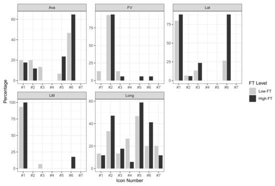Percentages of Tesla HMI icons used to answer TRASS questions from participants with high and low FT.