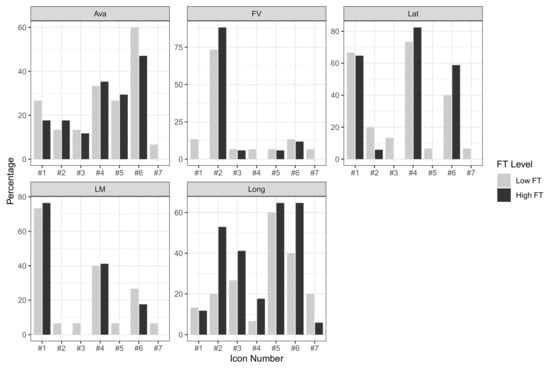Percentages of BMW icons used to answer TRASS questions from participants with high and low FT.