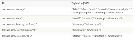 The chosen approach emphasises the usage of SCXML [23] as an interoperability model’s data format. It is a standard by the World Wide Web Consortium (W3C) for representing Harel statecharts in an XML-based data format. The integration of Harel state charts enables the representation of states, compound states, and parallel states transparently. Moreover, it supports the extensibility of defining the necessary boolean expression language, location expression language, value expression language and scripting language. The mapping of needed test case related expressiveness, which covers the test case criteria groups (Criteria for data types, Criteria for transitions, Criteria for global conditions, Test specific functions), is shown in Table 2 and has been derived in the research project STEVE [21].