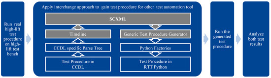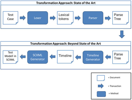 One approach is to use test models and generate test cases based on test model in one specific test script language [35,36]. In doing so, the test model defines all possible test cases as a state chart, an activity diagram or something similar to a state chart. Corresponding solutions have been developed as commercial products by, e.g., dSPACE GmbH, Verified Systems International GmbH, and Vector Informatik GmbH as the leading test bench supplier in the automotive and avionics sector. The current solutions support the generation only in their test bench specific test script languages. To gain a test case in another “foreign” test script language, the transformation could translate the source test model into a target test model. Subsequently, the test cases could be generated in the target test script language, and a suitable test case could be selected. There are available generic models to model transformation solutions, such as OPM modelling tool [37] or transformation languages, such as Query View Transformation (MOF QVT). The application of this approach has two fallbacks. The first is the proper selection of test cases within a corpus of test cases, and the second is the suitable configuration to generate the same set of similar test cases. To simplify this approach, the transformation from a test case into a test model would simplify the configuration and selection of the suitable test case. This feature is not provided by the current solutions. Thus, this solution is not applicable to the interoperability of test cases in the supply chain.