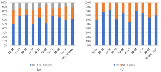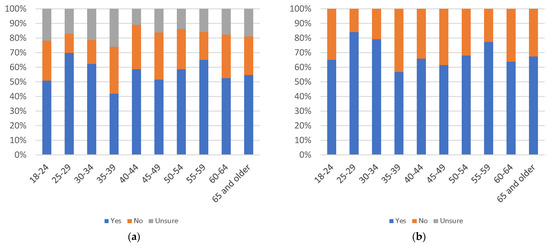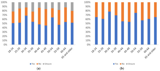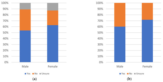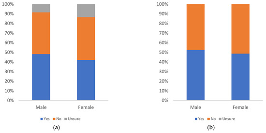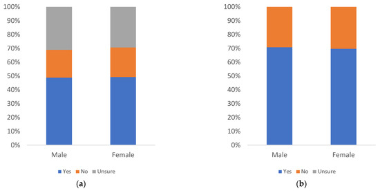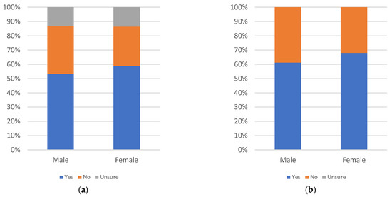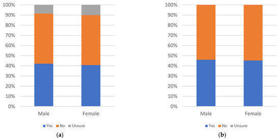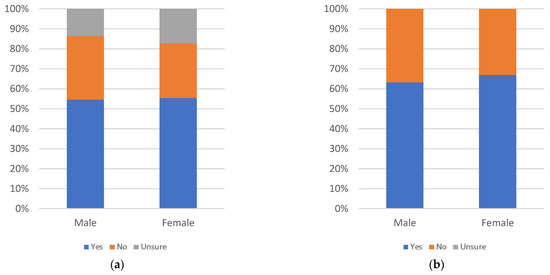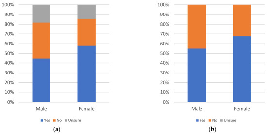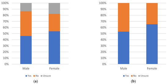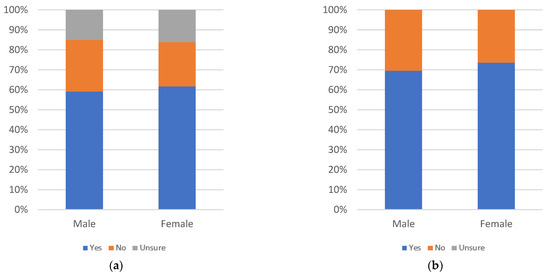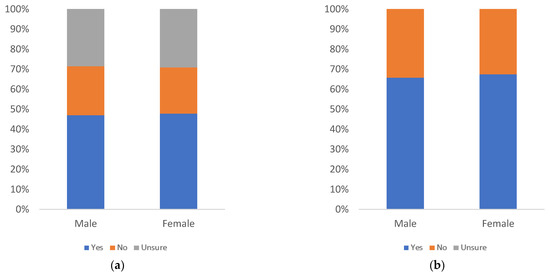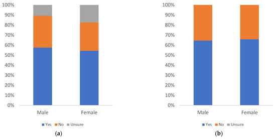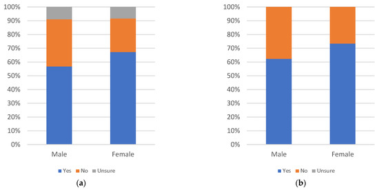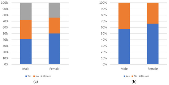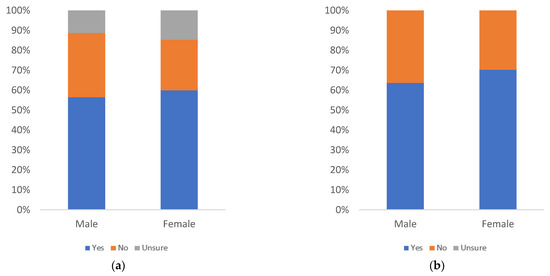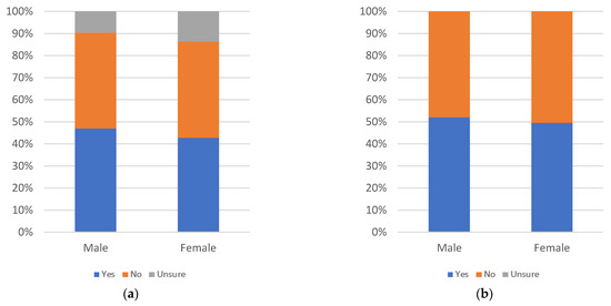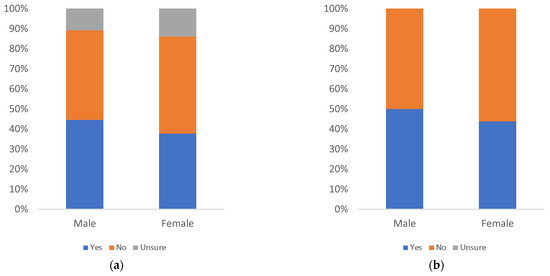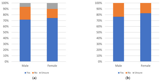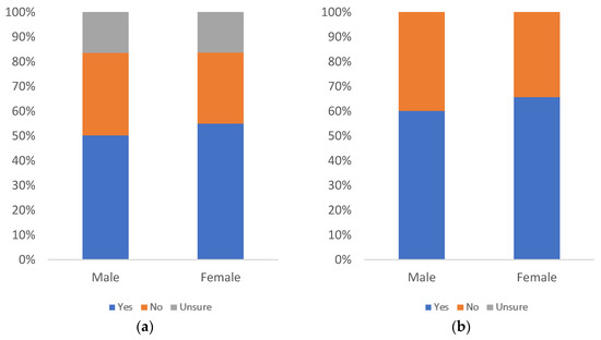 By gender, there are more yes responses among females than males and slightly higher uncertainty among females. Both groups have greater than 50% answering yes, even with uncertainty.