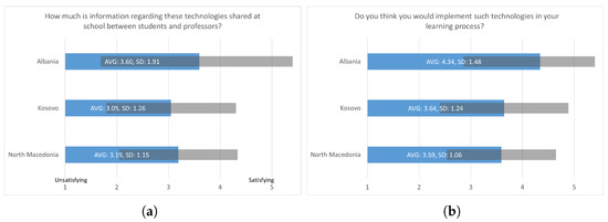 In this section, we present the results of an assessment of knowledge regarding virtual technologies and their implementation in teaching and learning processes among academic staff and students from different HEIs in Western Balkan countries, namely Kosovo, Albania, and North Macedonia. The results were derived from a questionnaire that was delivered electronically to students and teachers or researchers in different universities country-wide in the three aforementioned countries. The staff questionnaire consisted of 11 questions with 710 staff members participating (275, 375, and 60, respectively), and the student questionnaire consisted of 10 questions with 2217 students participating (1289, 641, and 287, respectively).