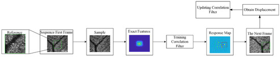 Deep learning has been widely used in computer vision and medical image processing [30,31]. Deep convolutional features have large perceptual fields and rich semantic information, which are suitable for target detection and localization. Therefore, to solve the problems we described above, this paper proposed an automatic algorithm based on the VGG-16 network [32] and a correlation filter [33]. The VGG-16 network was used to extract features, and the correlation filter was used to detect the position of the reference in the next frame and obtain the displacement.