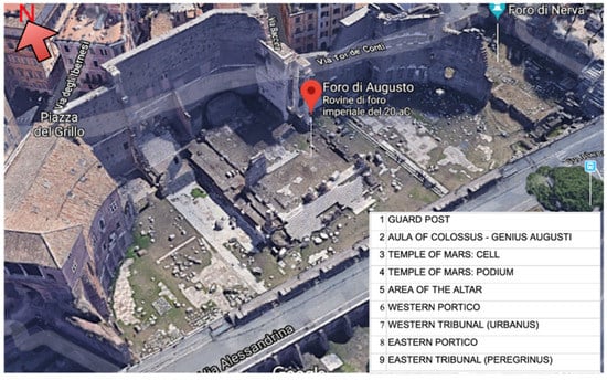 In 2019, the serious game (SG) “A Night in the Forum” (NiF) was published in the Sony PlayStation store for PS VR, as a prototype of a European project (REVEAL: Realizing Education through Virtual Environments and Augmented Locations). The game design adopted the findings of a previous evaluation of another, similar game in 2018 (“The Chantry” [1]). NiF is an Educational Environmental Narrative (EEN) videogame [2] dedicated to the Forum of Augustus in Rome. Its overarching goal is to engage young adult players (age +16) and their families with Roman history and archaeology, thus promoting cultural tourism and in general Cultural Heritage (CH), through videogames on widespread game platforms (see Supplementary Material for access to the videogame and its trailer). The game was developed taking into consideration two scenarios: (a) a guided play experience to be carried out in schools or museums and (b) a single user or family experience for home entertainment. Its educational aim is to involve players in Roman history, specifically that of the emperor Augustus and his Forum. The game’s key learning outcomes were identified as the comprehension and recall of main historical facts, concepts, and spatial information. These outcomes also defined the evaluation metrics for the game’s success. As such, 35 educational elements were chosen by the experts at the museum and used in the development of a framework that connected the gameplay with the narrative, as described in [2]. Relevant studies about game design and narratives were considered and applied to the design of NiF, including on the positive effect on comprehension of a well-defined story structure [3,4,5,6,7,8], on declarative knowledge acquisition [9], and on motivation and engagement [10]. Additionally, in the context of Virtual Reality (VR), works on how spatial memory may work better with active navigation [11,12,13] were also considered.