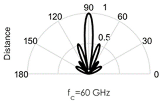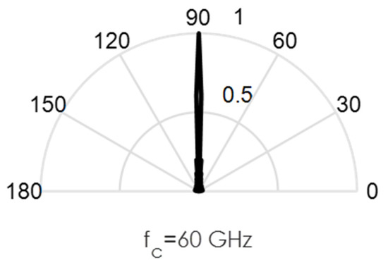 Directional beams produced by uniform linear arrays (ULA) operating at 60 GHz; 400 array elements with /2-spacing; 400 × 1 steering vector A = [1 1 1 … 1].