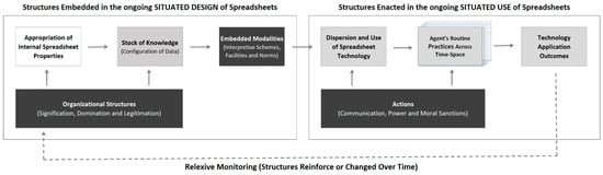 Digital spreadsheets-in-practice conceptual model. Adapted from Orlikowski and Giddens [1,3].