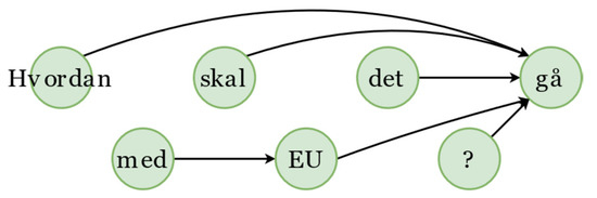 - Johannsen, A.; Alonso, H.M.; Plank, B. Universal dependencies for danish. In Proceedings of the International Workshop on Treebanks and Linguistic Theories (TLT14), Warsaw, Poland, 11–12 December 2015; p. 157. [Google Scholar]