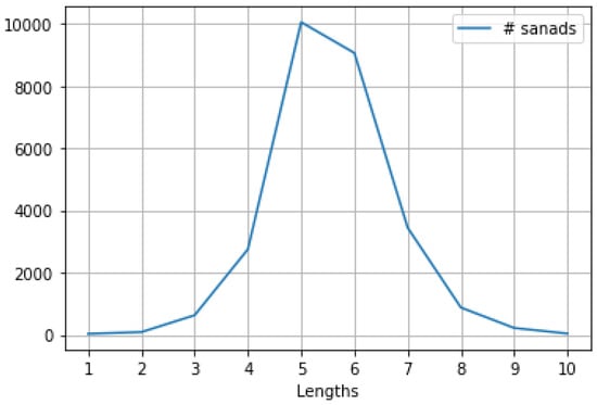 The above procedure produces artificial sanads of length five narrators. Similar procedures can be used to produce longer or shorter sanad chains. We created sanads of lengths (3–7) as those are the most common sanad lengths in real hadiths. Figure 3 shows the distribution of sanad lengths in ∼30 k real hadiths.