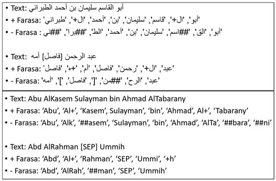 - Abdelali, A.; Darwish, K.; Durrani, N.; Mubarak, H. Farasa: A fast and furious segmenter for arabic. In Proceedings of the 2016 Conference of the North American Chapter of the Association for Computational Linguistics: Demonstrations, San Diego, CA, USA, 12–16 June 2016; pp. 11–16. [Google Scholar]
