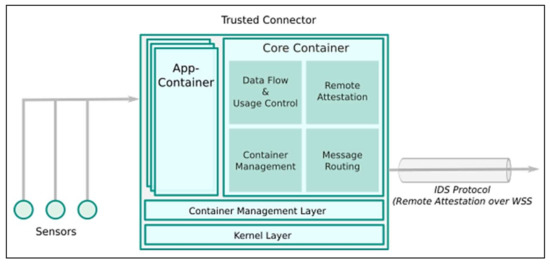 Figure 5. Trusted Connector of the IDS (https://industrial-data-space.github.io/trusted-connector-documentation/docs/overview/) (accessed on 6 December 2021).