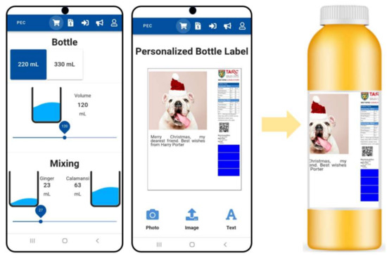 PEC stands for Personalized E-Commerce. It is a mobile web application that accepts and manages orders from online customers to purchase individualized mixed-juice products, as shown in Figure 8. PEC allows customers to customize their juice order, tailored to their individual needs. The customer can mix different ingredients of their choice, which include bottle size, ingredient contents and mixing ratio, label image, and custom text to be stated on the label. In this use case, PEC represents the retailer who manages the transaction and the automated generation of customers’ sales orders. Therefore, the asset known as “Sales Order” will be created automatically when any customer places an order, to be sent to OMIS for made-to-order and on-demand manufacturing via AAdSys.