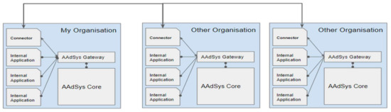 AAdSys consists of a Gateway, a Connector, and a Core. The Gateway establishes the RESTFUL API interface that allows any internal function or service to communicate with AAdSys. The Connector manages all external communications with another AAdSys, which stays in other enterprises in the value chain. The Connector is also responsible for publishing the asset metadata to the Broker [47] and ensuring secure connections for asset data channeling. The Core manages message queues, raising events, and the transmission of real-time data. It ensures all instance data are sent correctly with a two-tier confirmation. It also implements duplication detection, checks time-to-live (TTL) for unsent data, and carries out various authentication and validation functions. The Core also handles all AAdSys core operations, such as wrapping asset data with the Asset Administration Shell, storing instance data, files, and digital media associated with the assets, and allowing the querying and retrieval of asset data within the system.