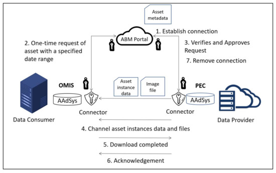 ABM, the acronym of Asset Brokering System, allows data providers and data consumers to publish their assets, to view various organizations, and to subscribe to the assets of their choice. The ABM consists of two systems: an online portal named the ABM Portal, and the ABM Connector, a trusted connector residing in the AAdSys. The overview architecture of the asset data channeling between enterprises is shown in Figure 13. One of the main advantages of the ABM is to ensure data security, effective asset management, and to prevent unauthorized third parties from making illegal data communication. All systems, services, or applications that are connected to the ABM are trusted first parties. The ABM Portal also acts as a data marketplace, which allows the registered organizations to publish their assets through AAdSys. The organizations are able to select any asset data that they want to make available to public view. This allows other registered organizations to browse for the publicly accessible assets that they might be interested in subscribing to. When an organization find any assets that they wish to subscribe to, they can send a request to the data provider and specify a date-range valid for data exchange. The data provider then needs to approve or reject the request based on their consideration. Should the asset get approved, the ABM Connectors will automatically establish a connection between the data provider and the data consumer. The ABM Portal also provides various services that the ABM Connectors can use to verify all transactions for communication.