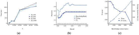 The original PageRank algorithm was used to determine the importance of a given web page [30]. This ranking was shown to be an excellent way to rank the importance of a word in a sentence [31] and determine trustworthy websites [44]; however, they are only applicable to their respective domains. The integration of topics into PageRank can help weight the edges used in PageRank. This weighting is accomplished using topic vectors determined by topic lists [45]. This method, while effective in improving the results of PageRank, yields no improvement in topic modeling. PageRank was also used to add weighting to some classification and topic tasks [46,47,48]. As in TextRank, vanilla PageRank works to find an importance ranking among connected components. These and other approaches help form a motivation for our work, but they do not offer insights to how they may rank knowledge sources.
