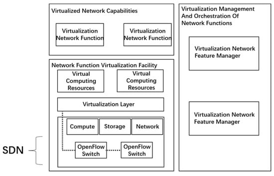 NFV and SDN come from the same technical basis [28]. SDN and NFV are independent of each other and do not necessarily depend on each other, but they can promote the flexibility of each other’s deployment. The effective combination of SDN and NFV will reduce the dependence on network physical components that improve the security prospect [29]. Its framework is shown in Figure 2.