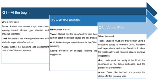 The university also has an official mechanism of receiving feedback and preparing the quality report of each CUnit. At the end of the CUnits, all students are invited to evaluate the CUnit and professors. This questionnaire is available to all the courses and students of the University of Minho.