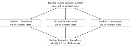 - Currey, A.; Mathur, P.; Dinu, G. Distilling Multiple Domains for Neural Machine Translation. In Proceedings of the 2020 Conference on Empirical Methods in Natural Language Processing (EMNLP), Online, 3 June 2020; pp. 4500–4511. [Google Scholar]