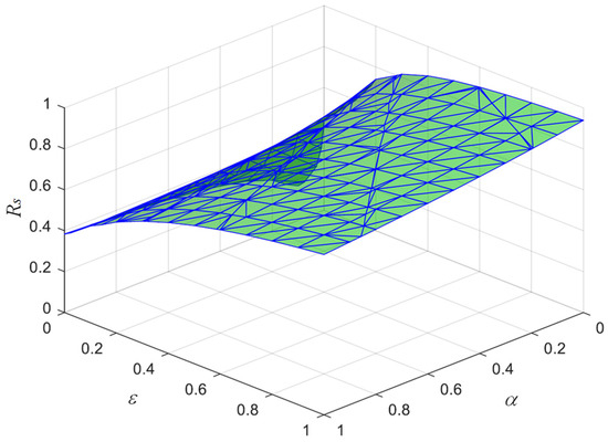 Figure 8 shows that the real-time online rate ε and the immune rate α of users in the complex network of the D-WUFPR rumor propagation model have an impact on the final spread range of rumors. After simulating the dataset of 5,284,457 users on Facebook, a large online social network, the resulting final spread range of rumors in the network is shown in Figure 8, considering both the immune rate α of network users and the real-time online rate ε in the network when rumors spread. With the increase in the number of immune users in the network and the decrease in the online rate ε of users in the process of rumor spreading, the final spread range of rumors decreases and finally decreases to 0.4.