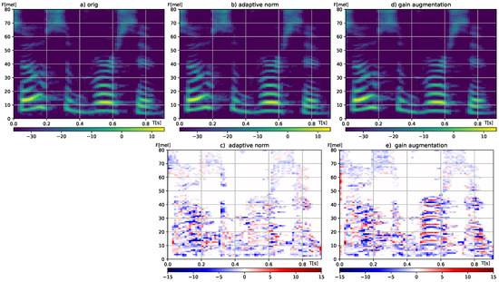 Due to the internal nonlinearities, a neural network is sensitive to data scaling. Therefore, for any real-world application, proper scaling of the input data needs to be ensured. The problem is not straightforward to solve for a neural vocoder that should work for voice processing in a digital audio workstation. Data standardization [50], which means that the input data is standardized, is no solution because the standard deviation of an audio signal strongly depends on the presence of pauses. In the following, we will investigate two other solutions. The first is based on data augmentation. In this case, training will be performed on data sets with a random constant gain applied to the audio files. After training, the network should be able to handle mel spectra in an amplitude range that was covered by the augmented data set. The problem with this approach might be that training with augmented data will bind network resources such that performance degrades. The second solution is based on a new, adaptive signal normalization that tries to ensure that any given signal content always appears to the network with the same level. This is achieved by means of a pair of gains—the first being applied to the mel spectrogram, and the second, compensating the first is applied as a gain contour on the synthesized signal. In the following, we will introduce the proposed adaptive signal normalization scheme. The experimental evaluation of both strategies will be performed in Section 3. The proposed adaptive normalization proceeds in four steps: