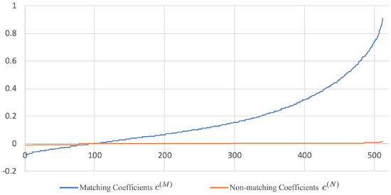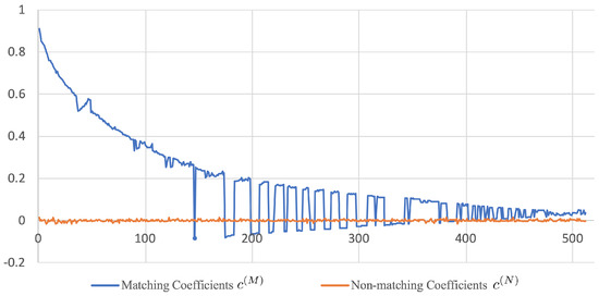 using matching coefficient c t ( M ) = [ Λ ] t t and non-matching coefficient c t ( N ) = [ Π ] t t , t { 1 , 2 , , 512 } , determined by the diagonal elements of Λ and Π :