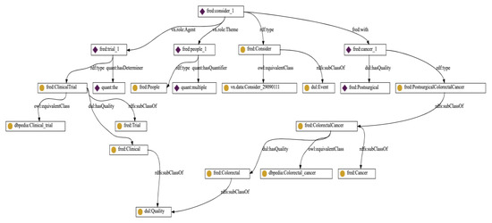 Example of a graph produced by FRED from the sentence, “The clinical trial considers people with postsurgical colorectal cancer”.