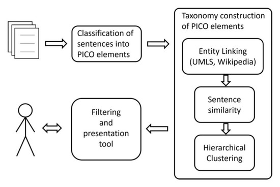Next we describe a framework for the organization and filtering task based on PICO elements. An overall description is reported in Figure 4.