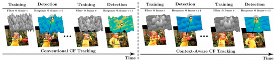 Comparing conventional CF tracking to proposed context-aware tracking.