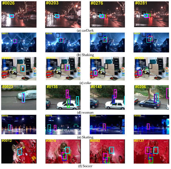 - Danelljan, M.; Khan, F.S.; Felsberg, M.; van de Weijer, J. Adaptive color attributes for real-time visual tracking. In Proceedings of the 2014 IEEE Conference on Computer Vision and Pattern Recognition, Columbus, OH, USA, 23–28 June 2014; pp. 1090–1097. [Google Scholar]