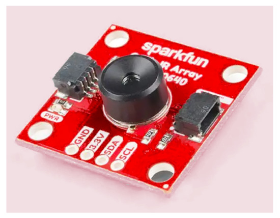- Heimann sensors (https://www.heimannsensor.com/. Accessed 29 January 2022): These sensors come in a wide variety of resolutions and levels of noise, Field of View (FOV). Namely, their resolution starts from 8 × 8 and increases to 120 × 84 pixels. The main drawback of these sensors is their much higher cost. Nonetheless, these sensors require using their own evaluation kits (which come at a high price as well) making a solution based on them much more expensive.