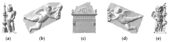 The importance of shape similarity was first underlined in the fields of computer vision, mechanical engineering and molecular biology applications [6]. As a response to new requirements, the automatic comparison of 3D models has been introduced in the form of tools that use algorithms for shape matching such as the well-known iterative closest point (ICP) [7]. As a result of complex restoration requirements, a lot of literature also offers significant content-based similarity matching solutions and algorithms for filling holes [8,9]. A myriad of visualization techniques has also been proposed for the manual reconstruction in order to reach the qualitative visualization. However, such methods mainly rely on computer-aided design (CAD) or geographic information system (GIS) software use [10,11]. This kind of approach provides high-quality representations of restored models that actually do not correspond to their original geometric form.