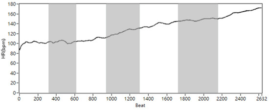 The demonstration of modified beat-domain HR and SV from patient #9. The white and gray blocks represent each sequence stage.