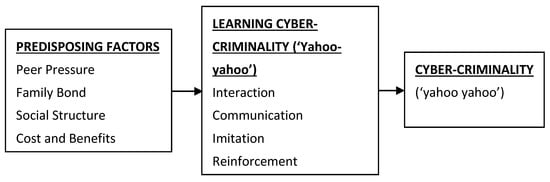 Analyzing different trending topics on Twitter may create insight into polarized opinions in various issues such as politics, celebrities, national disasters, corporations, etc., for real-world event prediction. Previous studies by researchers have shown that this practice falls within the socioeconomic cyber-crime [22], and its continued popularity can be attributed to the influence of friends [7,8,23]. The relationships between factors influencing these activities and the learning process are depicted in Figure 1 as adapted from [24].