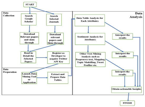 The research methodology employed in this study is presented in this section. The data analyzed is based on the content of the tweets and other metadata. Duplicated tweets were detected and filtered to analyze unique tweets from the dataset. This study adopted Liu Hu [39] and VADER [40] methods for sentiment analysis. The research approach was divided into three modules, as shown in Figure 2, including Data Collection, Pre-processing, and Data Analysis.