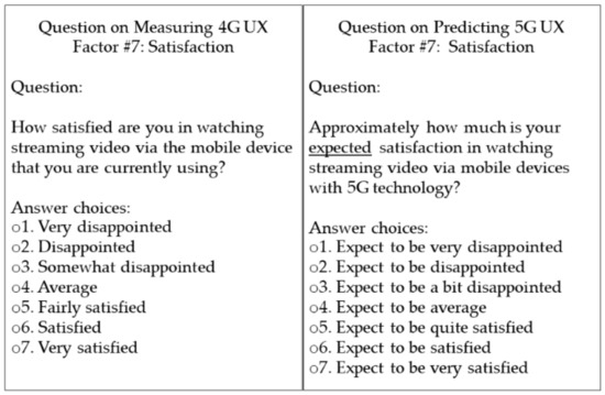 Sample questions on a questionnaire to measure 4G UX and 5G UX expectations.