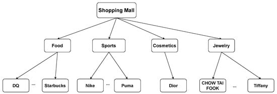 Table 1 is an example of an access point; covers six stores belonging to the category of Cafe, Men’s Fashion, General Fashion, General Footwear, Men’s Footwear, and Underwear. Then, we denote as = {15, [Cafe, Men’s Fashion, General Fashion, General Footwear, Men’s Footwear, Underwear]}